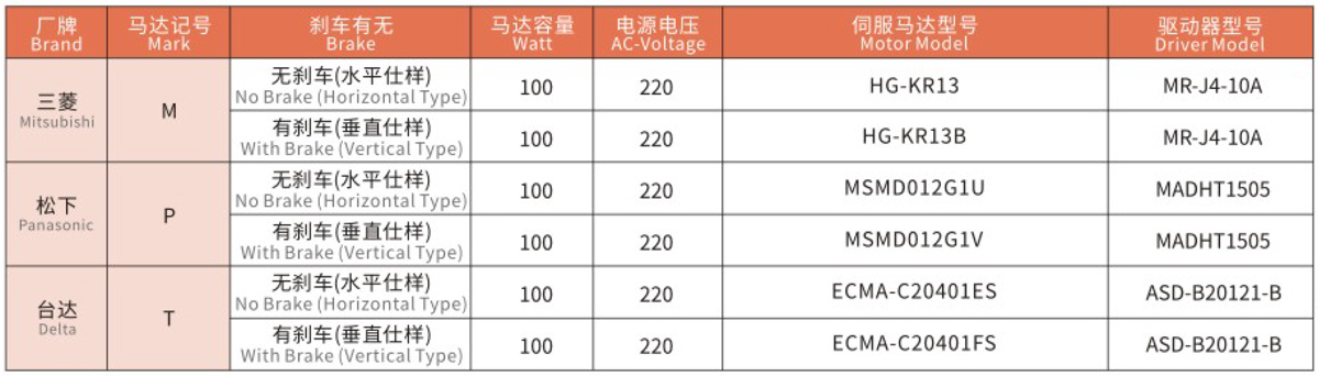 搭配伺服马达一览表